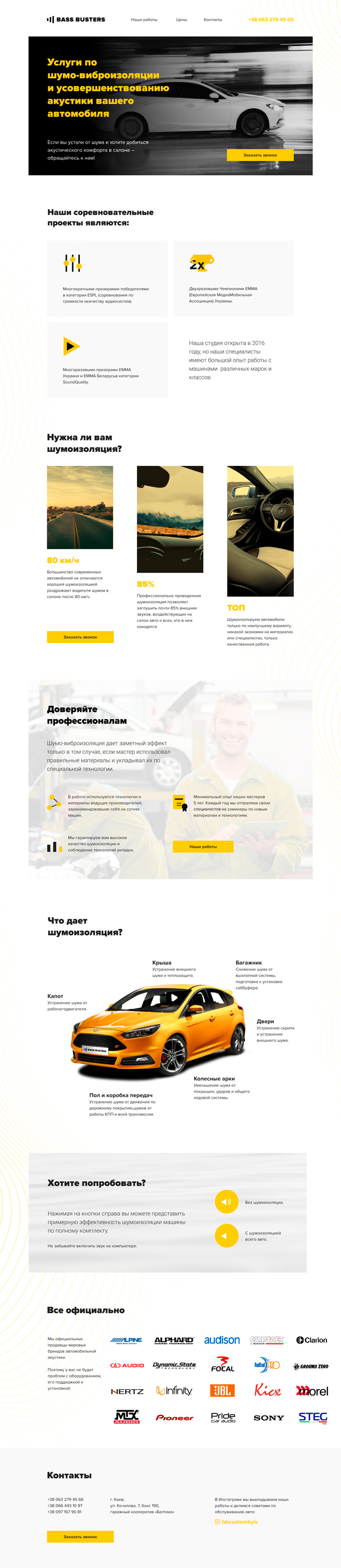 Разработка сайта для компании занимающейся установкой шумоизоляции в машины. Нужно было представить компанию на рынке, показать преимущества работы, предоставляемые услуги и в тоже время выделится на фоне конкурентов.