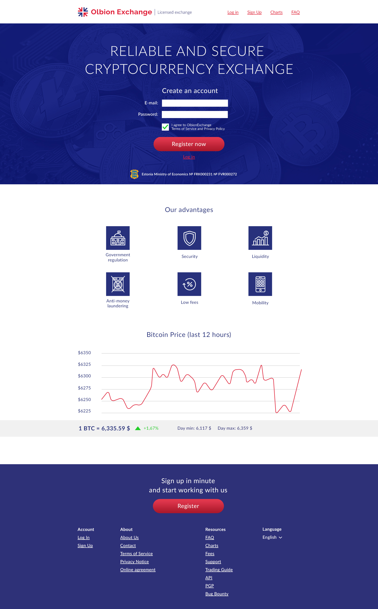 На основной странице в подвале повторена ссылка регистрации, а так же все нужные ссылки на документы подтверждающие статус биржи.